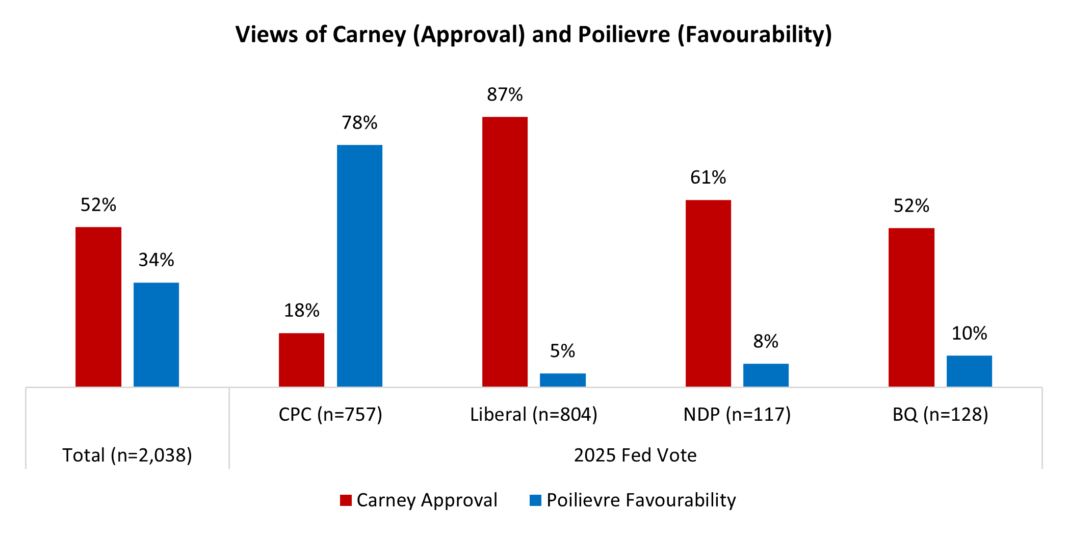 The Conservatives are in a difficult place. As things stand, Poilievre has no chance at beating Carney as Canadians’ preferred Prime Minister, but they also have no obvious choice for replacing Poilievre. Do they support him in his leadership review only to lose the next election anyway because Poilievre is broadly unlikeable? Such an election could even give the Liberals a majority, if they don’t get one from Conservatives fleeing Poilievre’s party before then, that is. Do they oust him, only to replace him with a candidate with no national recognition or ability to hold the party together against a strong Liberal mandate? That option could also reduce their likelihood of winning an election.